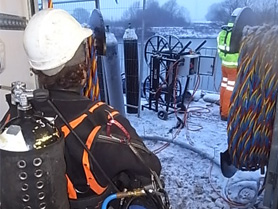 Project: UHP water jetting, pile wrapping and underwater welding of anodes