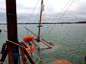 MMC Diving Services surveyed her in chilly conditions and low visibility. They then formulated a plan to right her. Once she was upright they affixed additional inflation bags to gently re-float her - all done by feel in zero visibility below water.