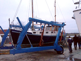 Working in conjunction with Hayling Yacht Company, the re-floating operation was a success. When she was pumped out she was towed to their yard for lifting, cleaning and any refitting work.
