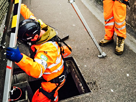 To gain access to the underground chambers running either side of the Richmond Hill Interchange and Wellington Road Highway, MMC's confined space team had to remove large cast iron access covers. Before entry the team used gas monitors to determine that the area was safe to access, and when entering the chambers carried escape BA.