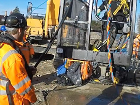 This involved confined space divers working inside the sluices to remove the grill work, and divers working mid water in the river from a man riding basket, drilling and securing the steel former to the wall ready for pumping out or dewatering.