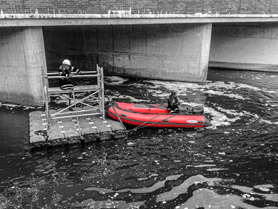 Divers assisted with the launch, assembly, and recovery of the support tender, pontoons, and tower scaffolding, which provided access for engineers to inspect the bridge soffits.